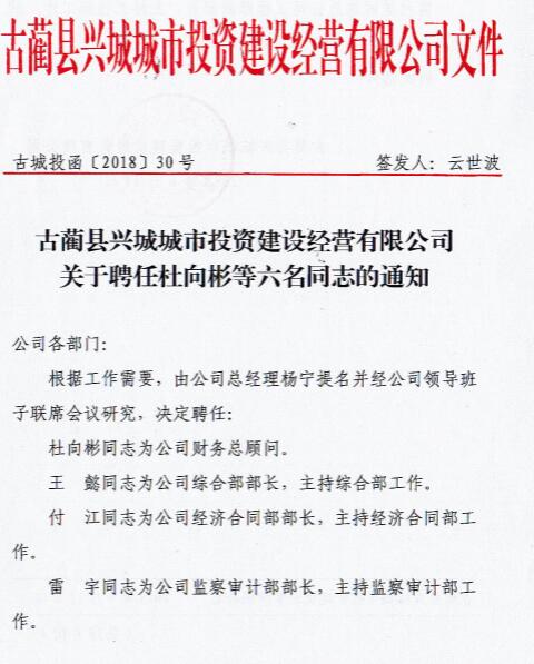 關于印發(fā)《古藺城投公司部門職責》的通知